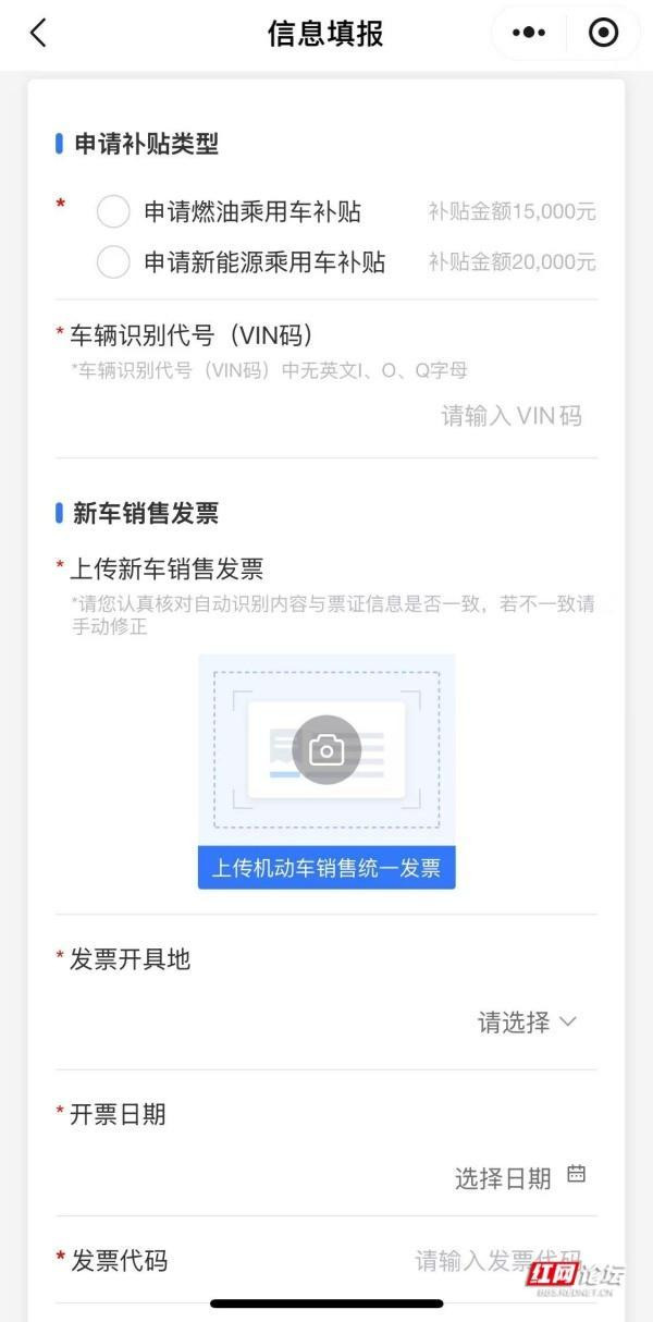 填写新车信息、车辆识别代号(见新车绿本或新车发票),上传新车销售发票。